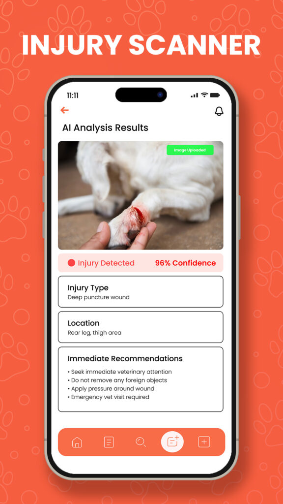 - Injury Scanner – Upload a photo for instant AI-powered health insights