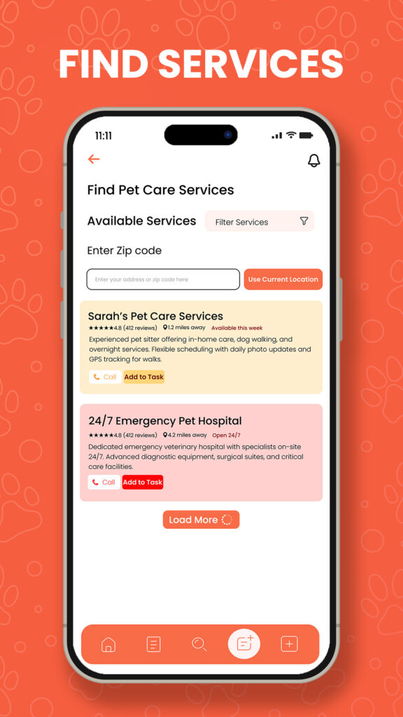 - Find Pet Services – Discover nearby vets, groomers, and trainers