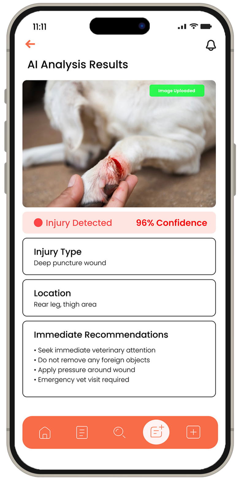 Upload a photo of your pet’s injury for instant AI analysis and care suggestions