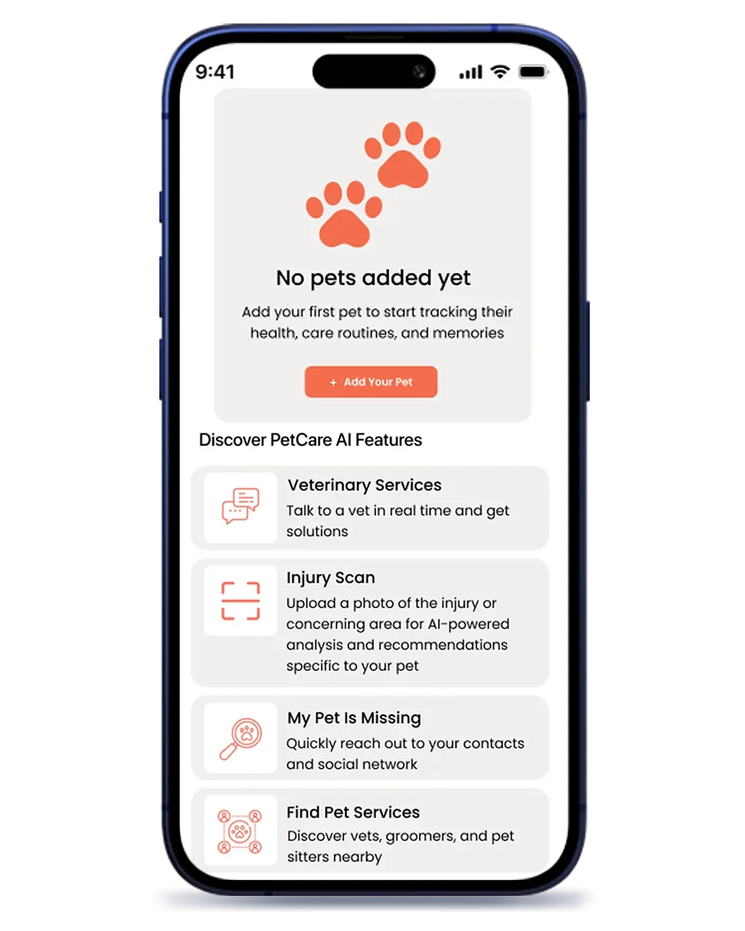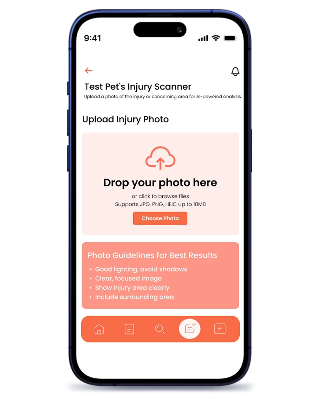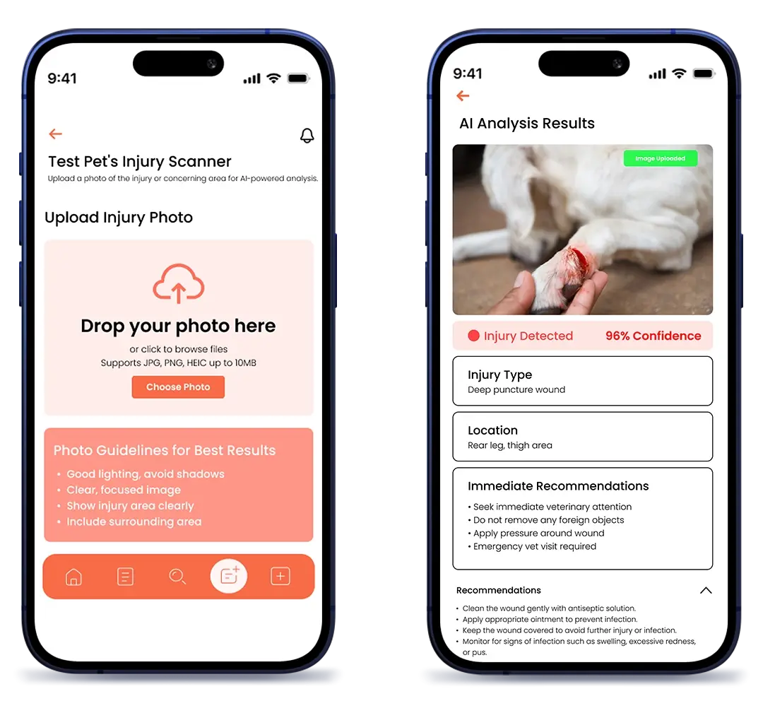 Animal Injury Scanner is an advanced AI feature designed to analyze visible injuries or health concerns from photos. By simply uploading an image, pet owners can receive preliminary insights about possible issues, helping them decide whether home care is enough or professional veterinary attention may be needed.